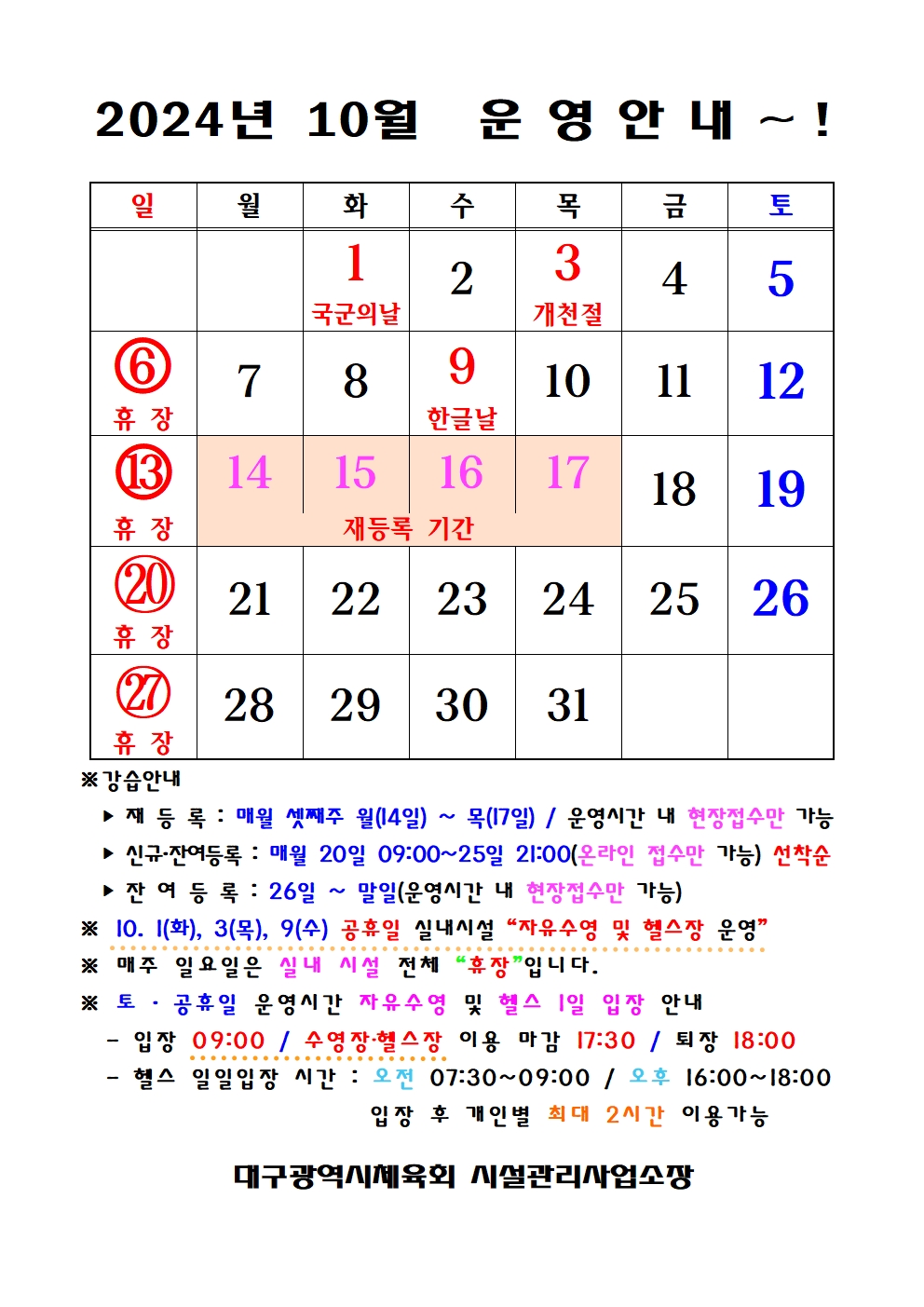 `24년 10월 운영(휴관) 안내!